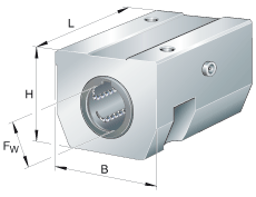 - 基本額定載荷僅適用于淬硬 (670+170 HV) 和磨削過的作為軌道的軸,而且兩個直線球軸承承受的載荷相同。