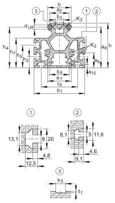 - 導(dǎo)軌的最大長(zhǎng)度 L;更長(zhǎng)的導(dǎo)軌可分成幾段供貨,并且相應(yīng)地標(biāo)注。