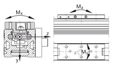 - 滑塊導軌系統的許用扭矩 這些數值是單一載荷,當執行器的下部完全被支承時使用。 當承受聯合載荷時,這些值必須減小。